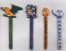 | ARTS and CRAFTS Linda likes to do a variety of crafts. Recently her crafts have focused around the Pokémon game. Here is a picture of her latest Pokémon craft, bookmarks. They're made from wrapping paper, foam artboard, and popsicle sticks! | ![]() |